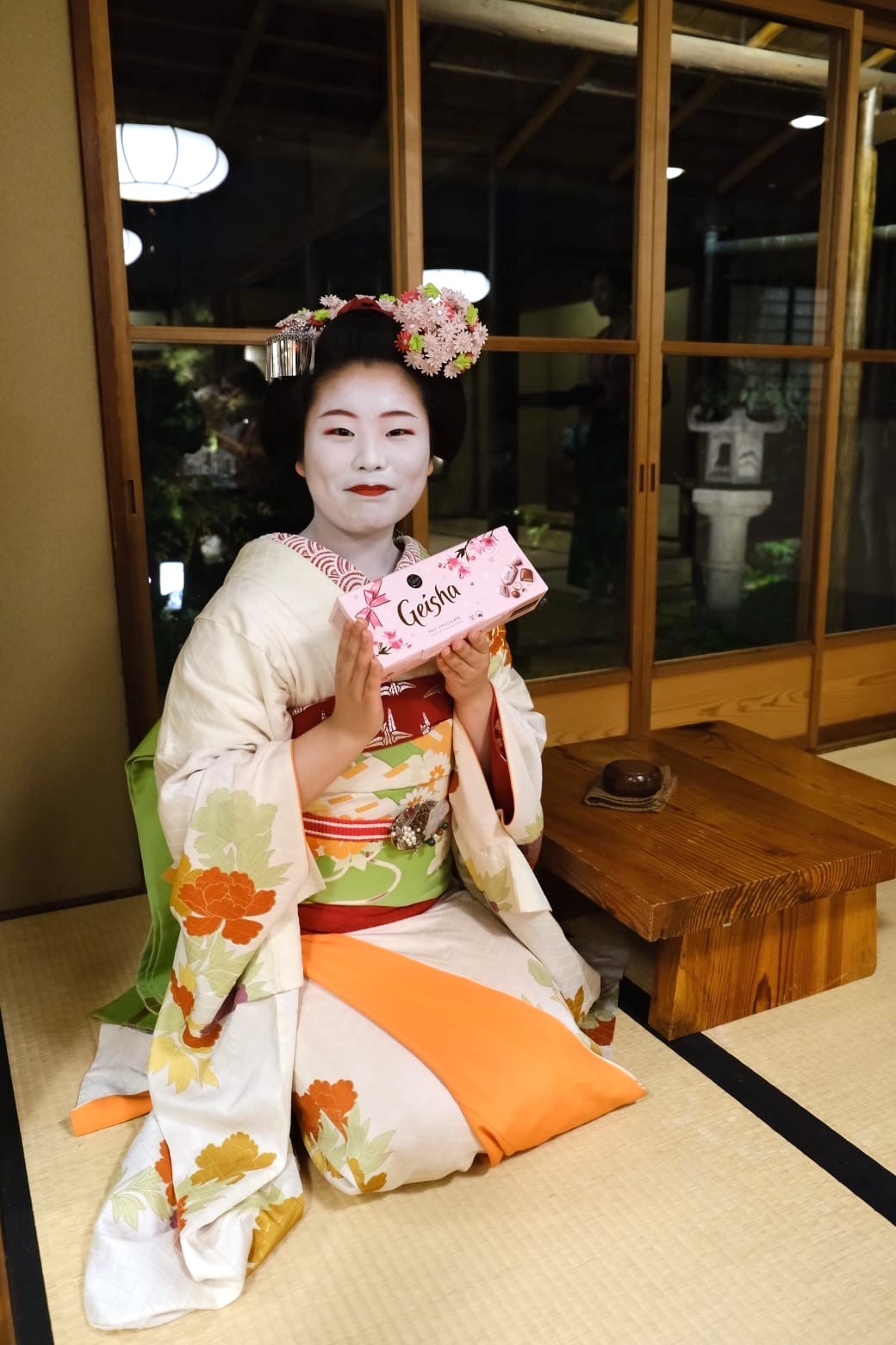 Illalla on mahdollista osallistua lisämaksulliselle kaiseki-päivälliselle maikon eli geishaoppilaan kanssa.