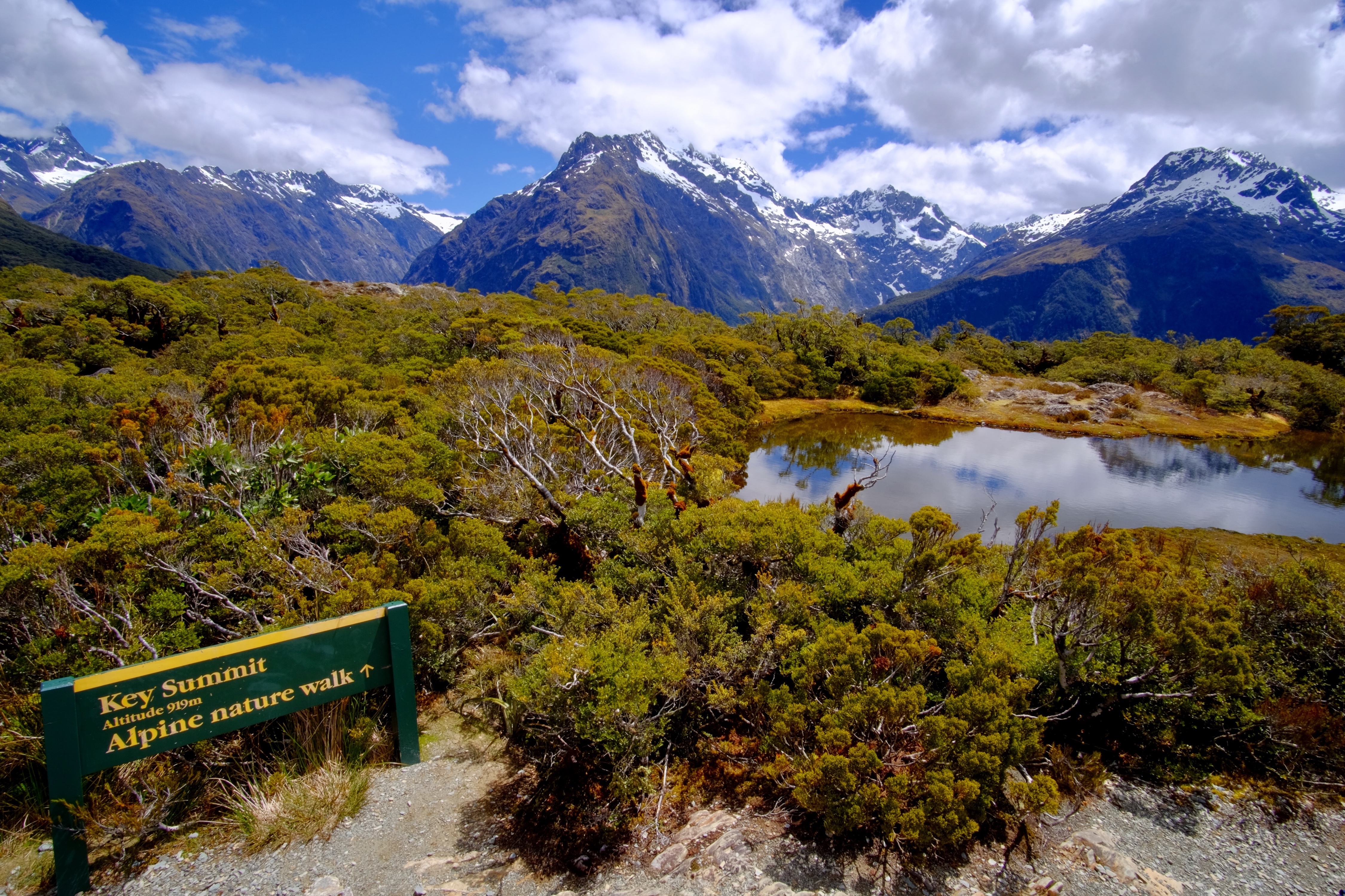 7. päivä, torstai Tänään kohteenamme on Key Summit, joka sijaitsee Etelä-Alppien sydämessä kuuluisan Routeburn Trackin varrella. Te Anausta on 1,5 tunnin luonnonkaunis ajomatka lyhyine pysähdyksineen ennen saapumista Divide Shelterille, josta patikointimme alkaa. Hyvin hoidettu reitti nousee vähitellen rehevän sademetsän läpi ja kestää noin kaksi tuntia tasaista vauhtia. Nousemme alppimaisemaan, jossa avautuvat laajat näkymät lumihuippuisille huipuille, alppijärville ja metsäisille laaksoille. Kirkkaina päivinä retkilounas nautitaan huipulla rauhallisten alppilammikoiden keskellä, kun taas epäsuotuisemmissa olosuhteissa lähellä oleva vaellusmaja tarjoaa suojaisan vaihtoehdon. Palaamme takaisin samaa reittiä, mutta alaspäin. Ennen paluuta saatamme tehdä lyhyet kävelyt Greenstonen ja/tai Hollyfordin laaksoissa, olosuhteista riippuen. Tämän päivän patikointi on matkamme vaativin. Reitti on pääsääntöisesti leveä, mutta lyhyillä osuuksilla jyrkempi ja kivinen. Reitillä on pari kaiteella varustettua kohtaa, joissa on jyrkempiä pudotuksia.