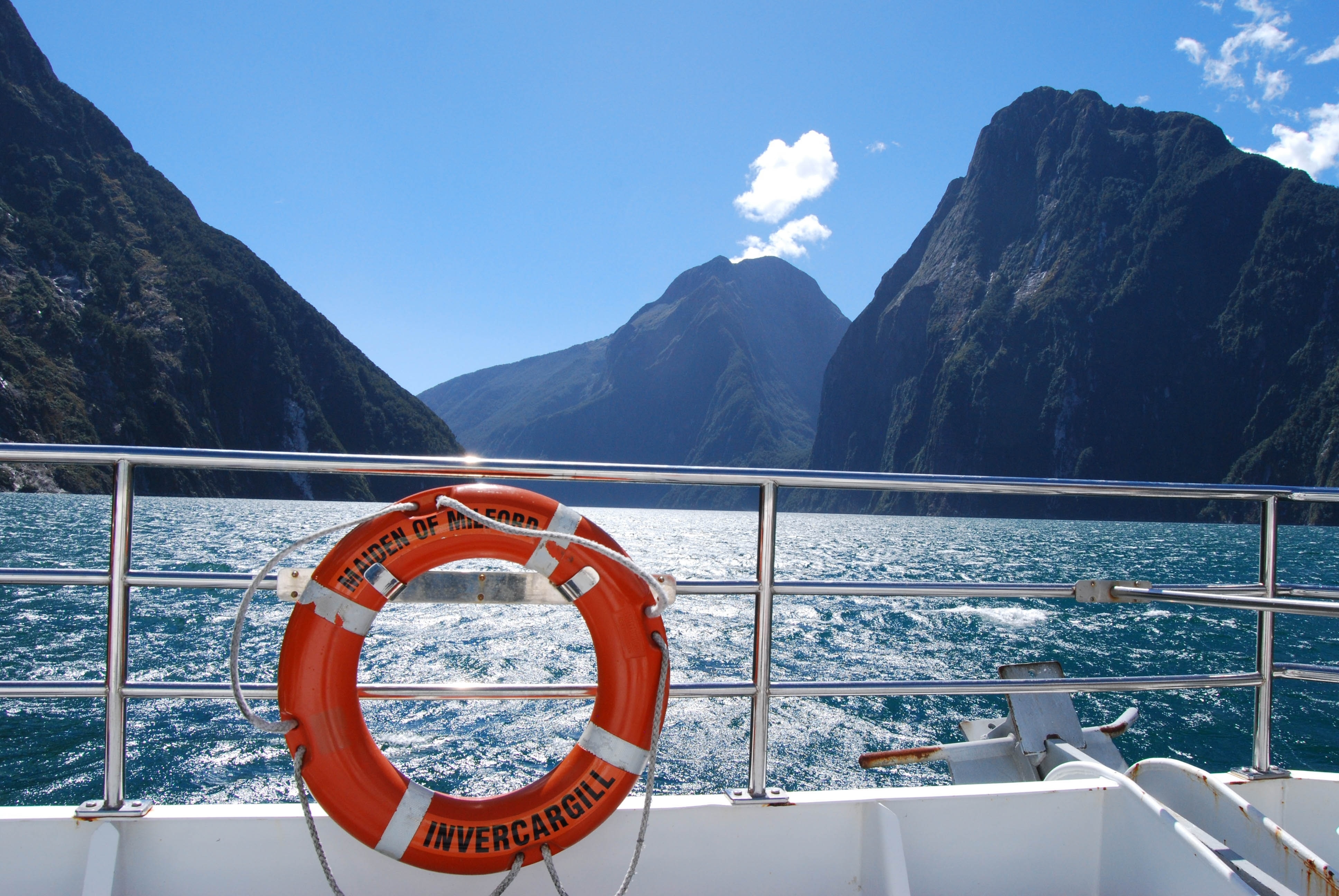 Milford Track -patikan kruunaa risteily upeassa Milford Sound -vuonossa, jonka lähes pystysuorat vuoret vesiputouksineen jäävät mieliin pitkäksi aikaa