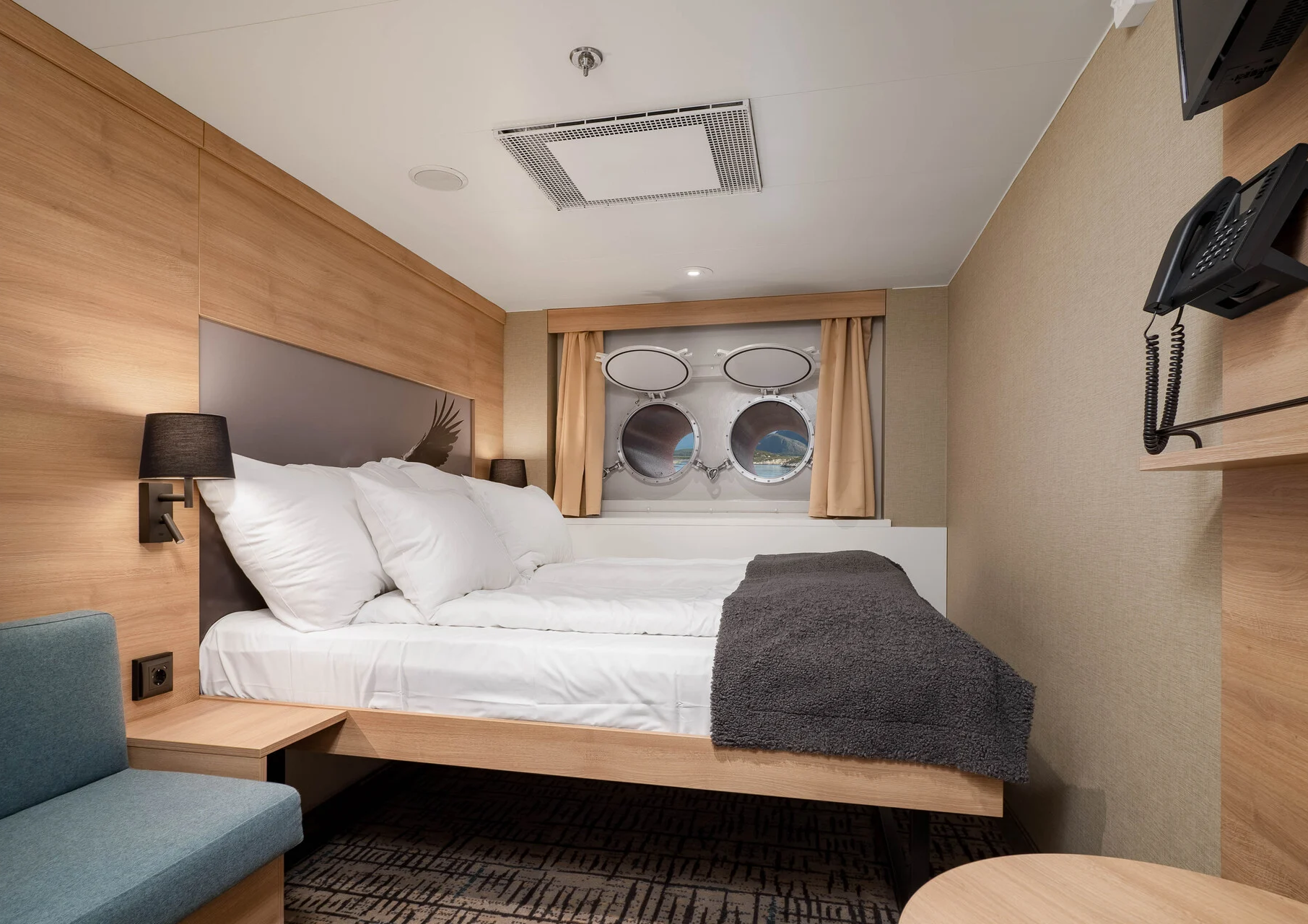 Huippuvuoret ja Hurtigruten-risteilyLisämaksu 1h huoneesta ja -hytistä alk. 670 € (ulkohytti, rajoitettu näkymä eli pieni ikkuna tai ikkunan edessä esim pelastusvene). 1h hyttejä rajoitetusti.