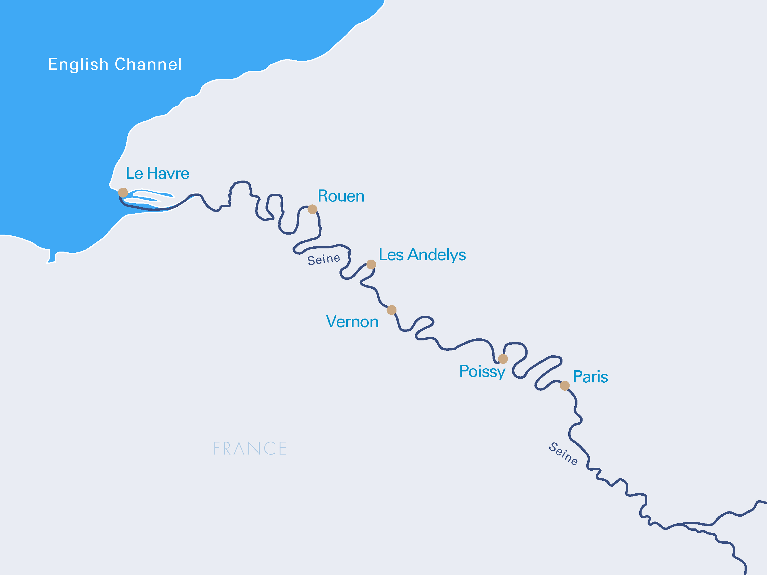 Seinellä Rouenin ja Pariisin välillä joen pinnan tason mahdollinen vaihtelu voi vaikuttaa mm. laituripaikkojen käytettävyyteen. Maihinnoususiltojen jyrkkyys riippuu joen vedenkorkeudesta ja toisinaan laituriin saattaa kiinnittyä useita laivoja vieretysten, jolloin maihin kuljetaan useamman laivan vastaanottokannen kautta.