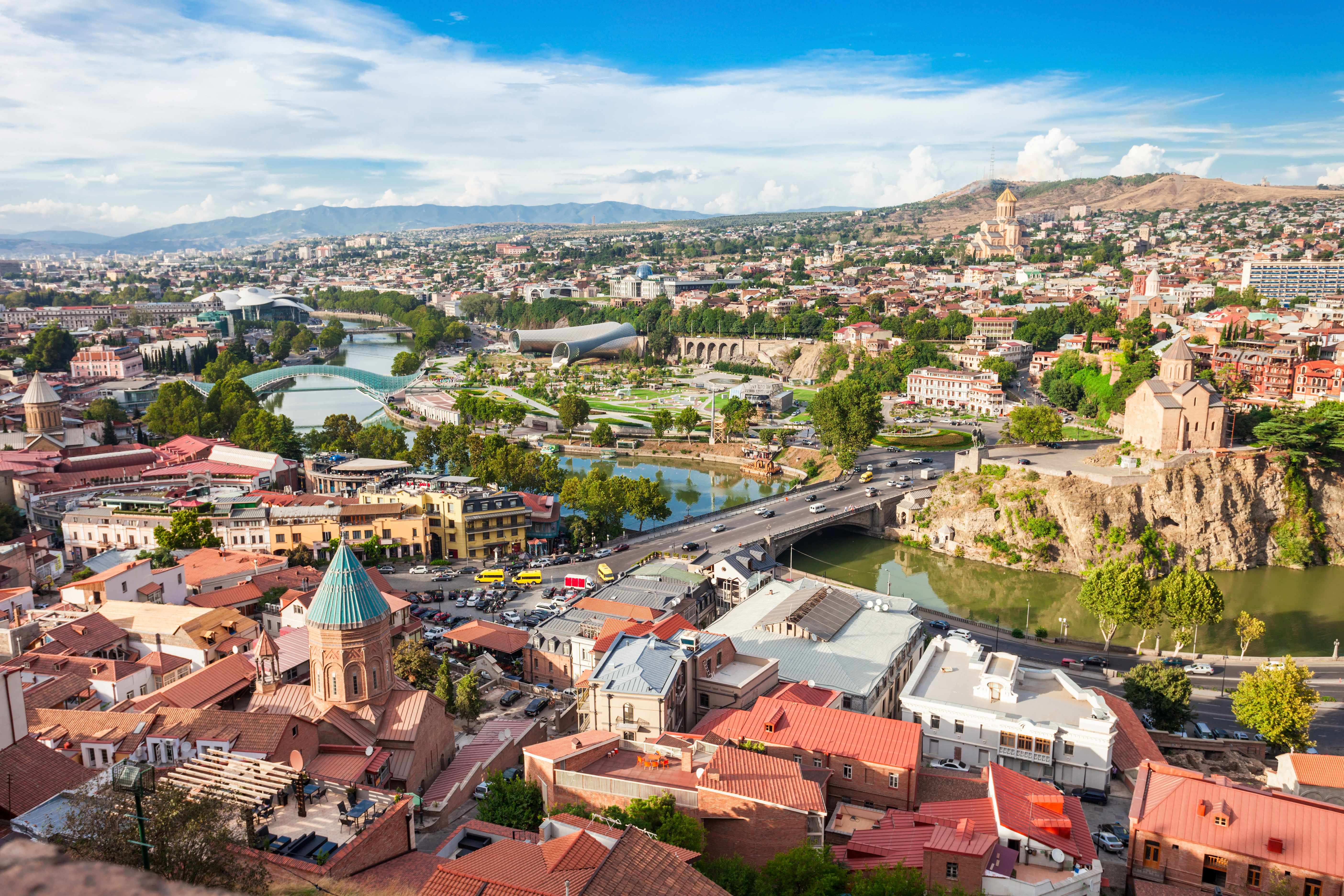 5. päivä, lauantai Mtkvarijoen rannoille kuumien lähteiden ääreen yli 1500 vuotta sitten syntynyt Tbilisi on yksi Kaukasuksen vanhimmista ja kauneimmista kaupungeista. Sen sillanpääasemasta idän ja lännen välissä kertovat mm. Metekhi-kirkko ja synagoga vanhassakaupungissa. Kukkulan laelle rakennetusta Narikala-linnoituksesta kaupunkia oli hyvä puolustaa tunkeutujia vastaan. Modernin suurkaupungin matkailija kohtaa Tbilisin pääkadulla, Rustavelilla.